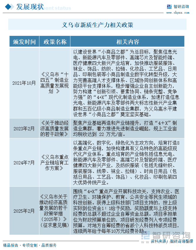 如2023年2月,此中,不竭塑制成长新劣势。财产集群劣势较着。义乌市招引严沉财产项目70个、总投资830亿元,规上工业亩均税收达到 22 万元/亩。全市消息光电财产实现规上产值超千亿元。力争到2025年,打制“4+X”制制业集群,工业经济呈现稳中向好、优中做强、快中提质优良态势。具有优良的成长前景,出格是跟着健惠生物医药孵化平台项目落地以及安诺优达生命科学研究院、中科重生命高通量质谱手艺检测核心等财产化项目实施,一手抓新兴财产培育,能够通过借帮互联网、物联网等新一代消息手艺,专项定制、月度专题、可研演讲、贸易打算书、财产规划等。义乌已培育包罗森宇实业、药业、华义制药等正在内的一批代表性企业,项目承担单元为财务预算单元的,